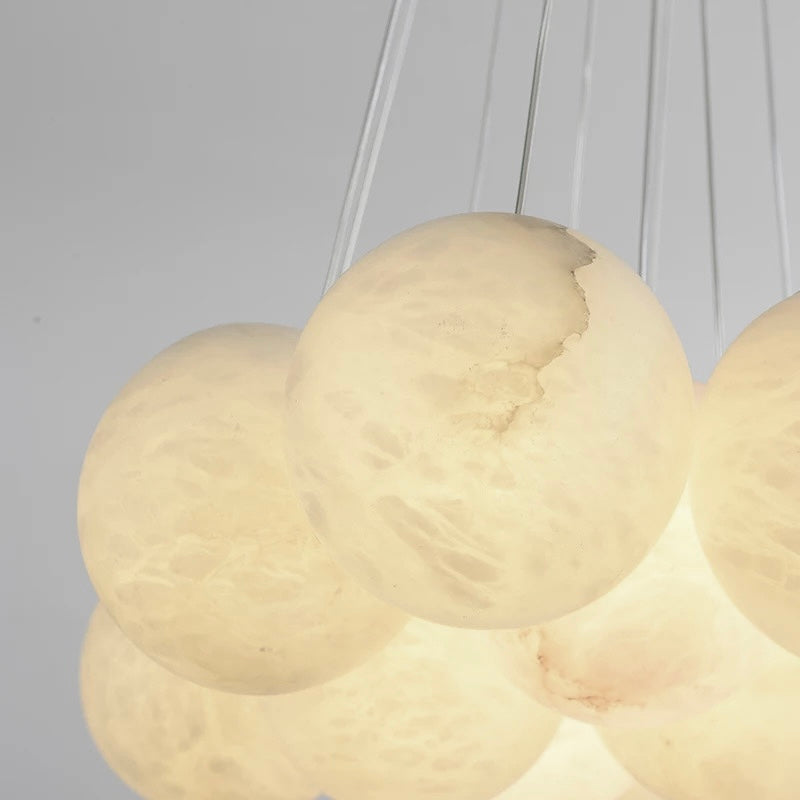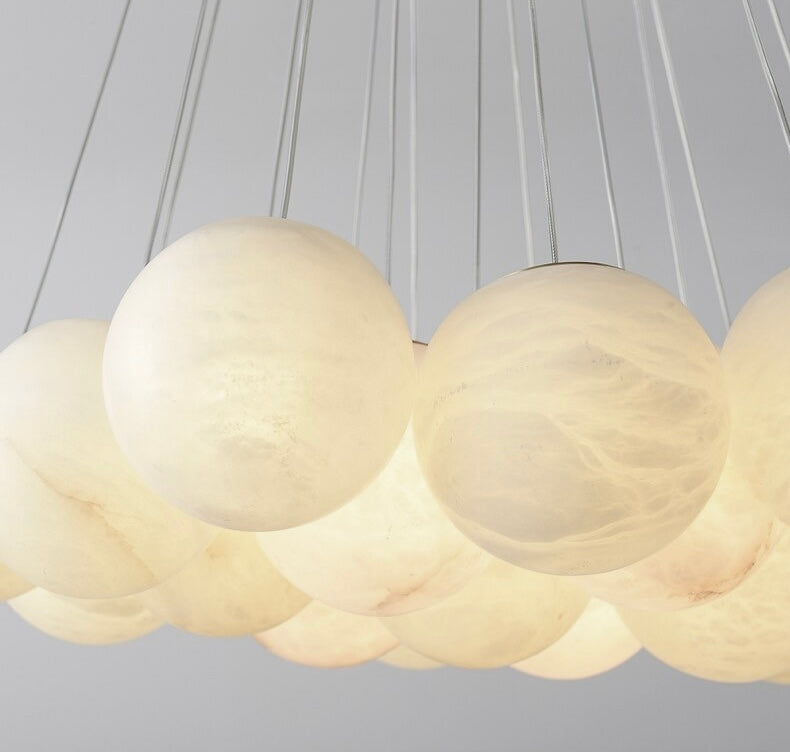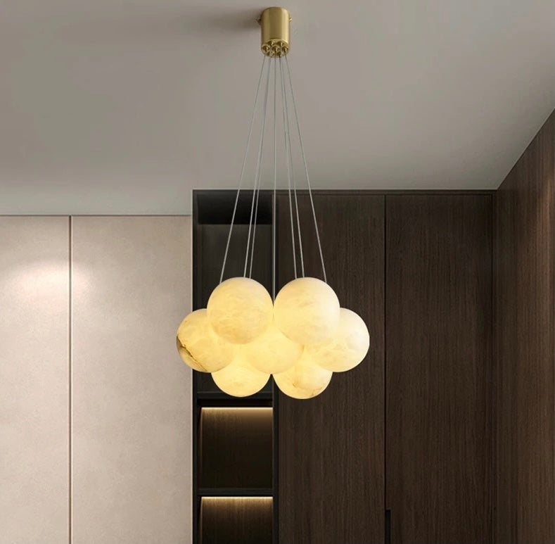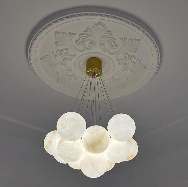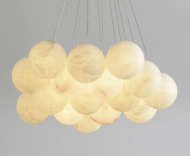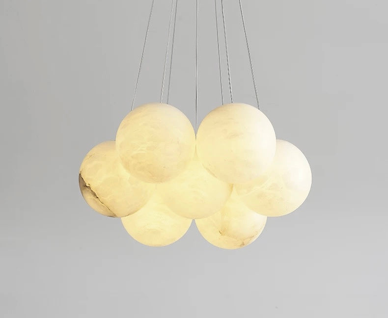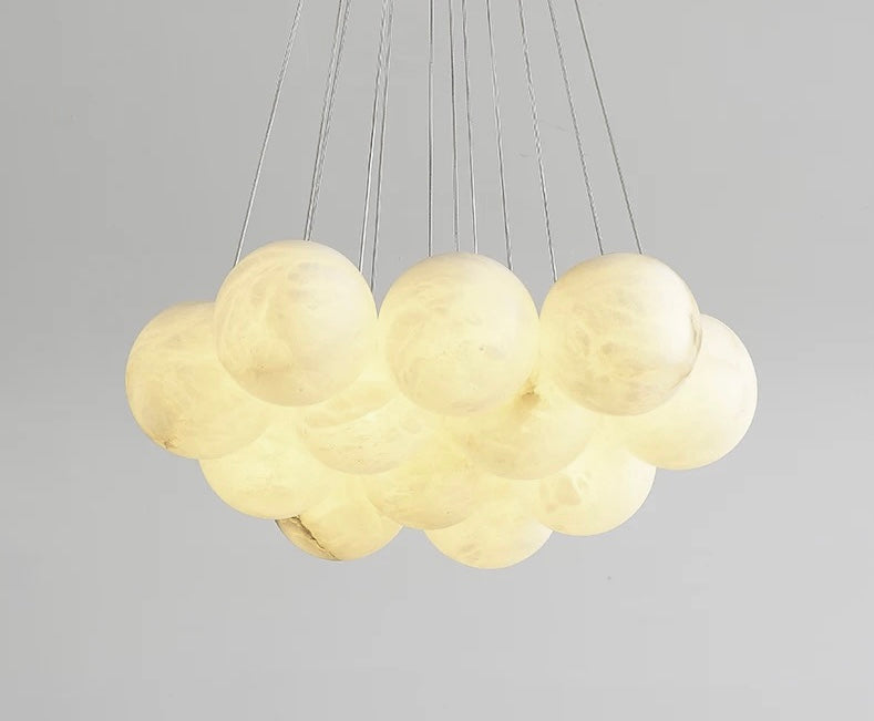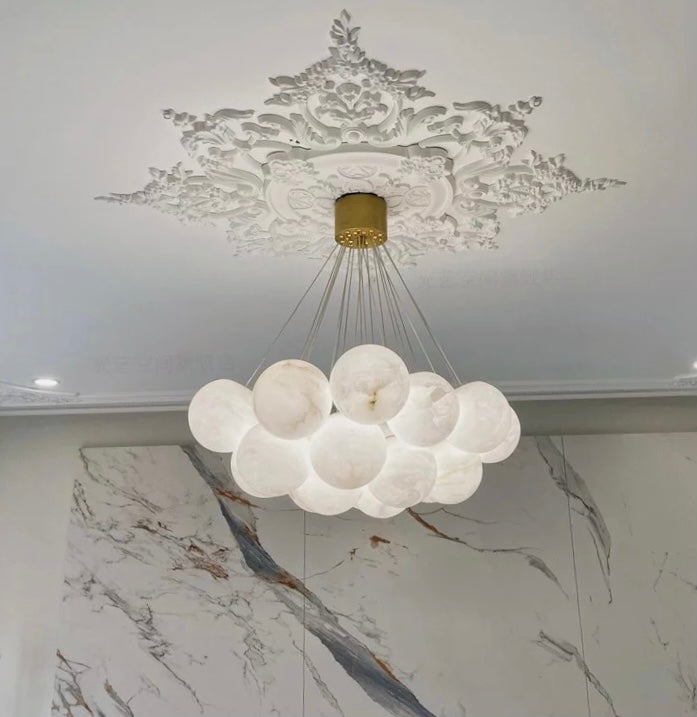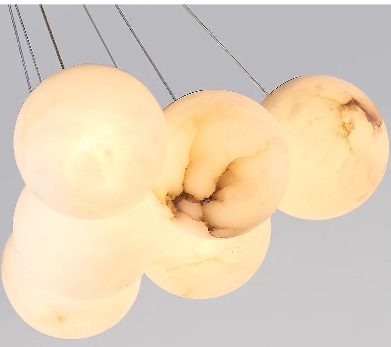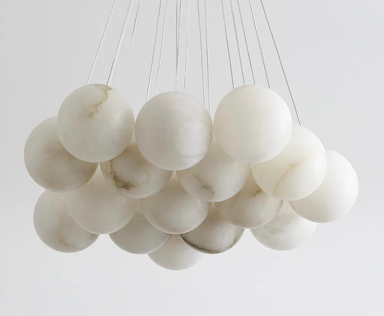 Taklampan Alessandra med sfärer i äkta marmor är en extremt stilren och tidlös taklampa. Alessandra är gjord med sfärer i äkta marmor, vilket innebär att varje lampa är helt unik. Lampan ger ett väldigt fint ljus när den är tänd men den fungerar även som en stilren inredningsdetalj när den är släckt.Själva upphängningen är gjord av borstad mässing.Taklampan finns med marmorkulor i tre olika storlekar: 13 cm och 15 cm i diameter.Trådsnöret som varje marmorkula häng. . .