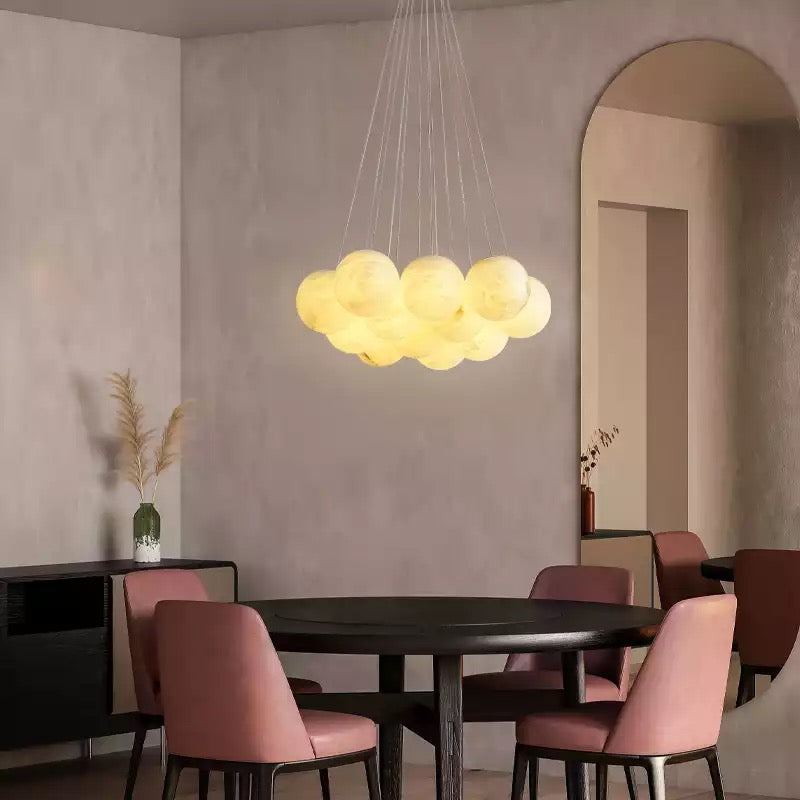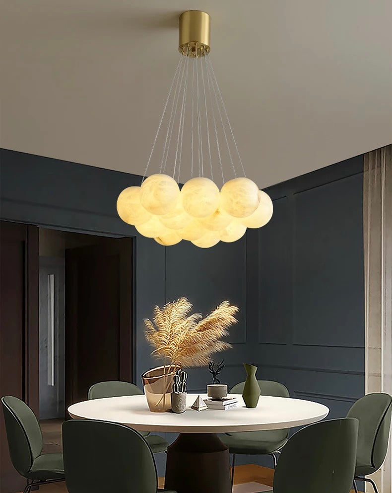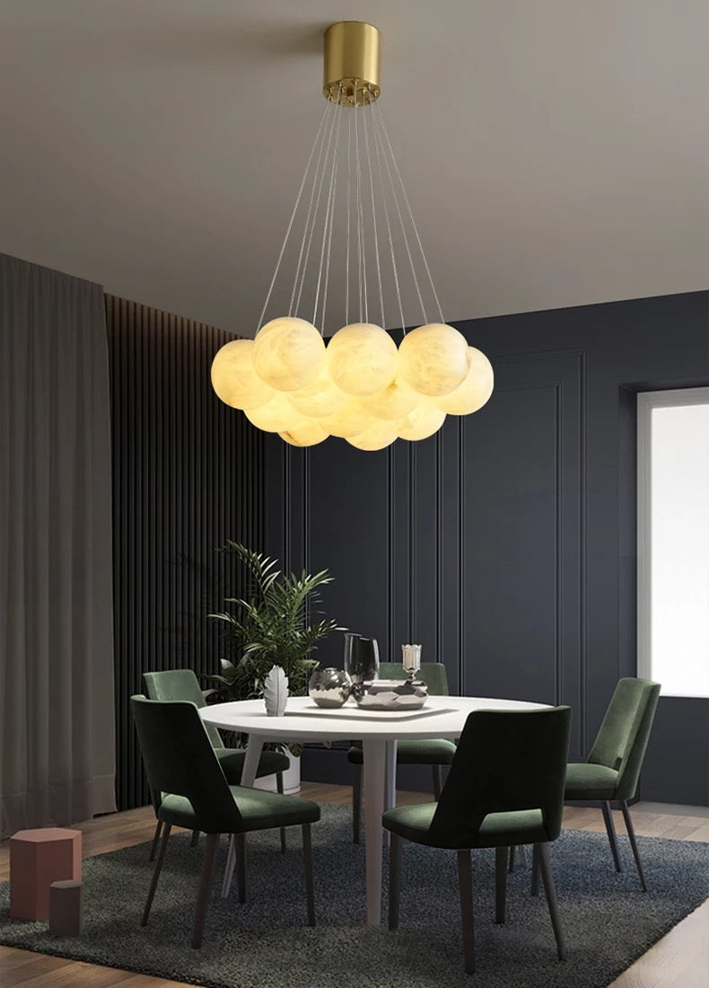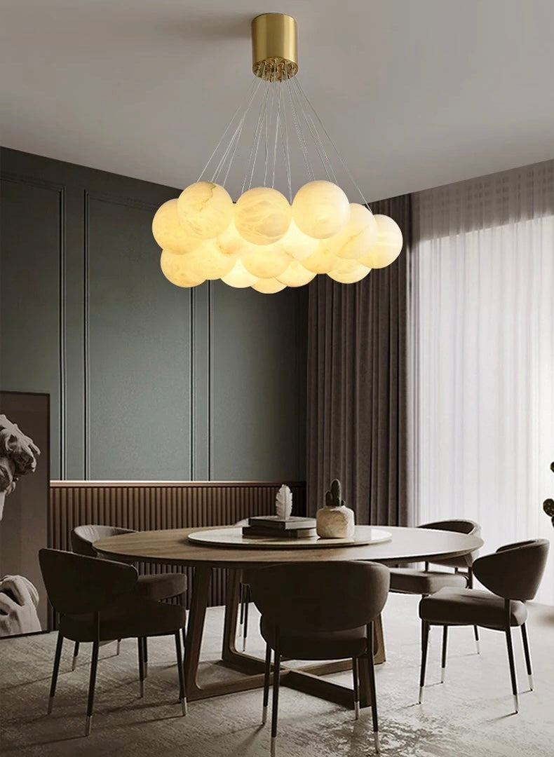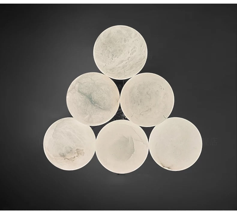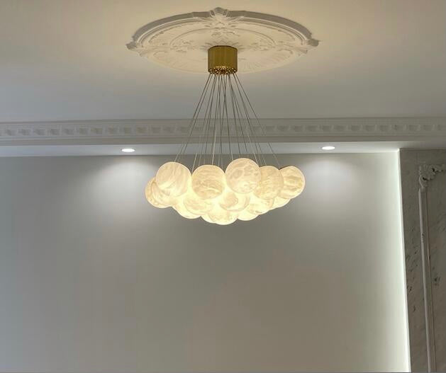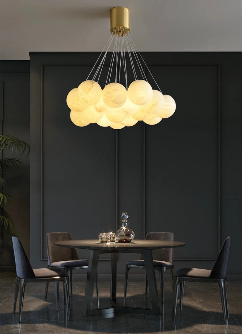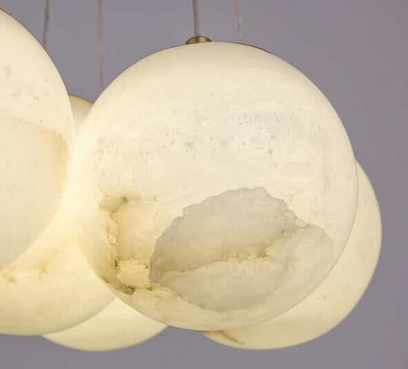 Taklampan Alessandra med sfärer i äkta marmor är en extremt stilren och tidlös taklampa. Alessandra är gjord med sfärer i äkta marmor, vilket innebär att varje lampa är helt unik. Lampan ger ett väldigt fint ljus när den är tänd men den fungerar även som en stilren inredningsdetalj när den är släckt.Själva upphängningen är gjord av borstad mässing.Taklampan finns med marmorkulor i tre olika storlekar: 13 cm och 15 cm i diameter.Trådsnöret som varje marmorkula häng. . .