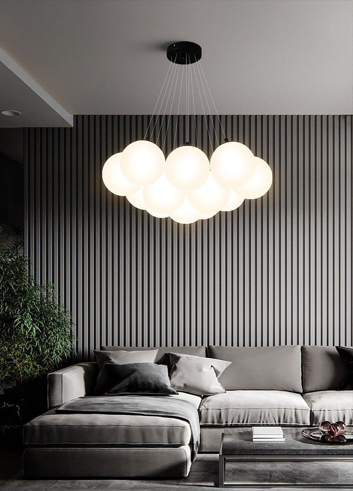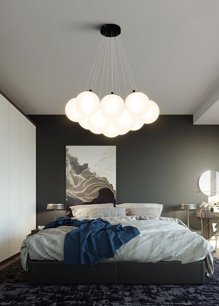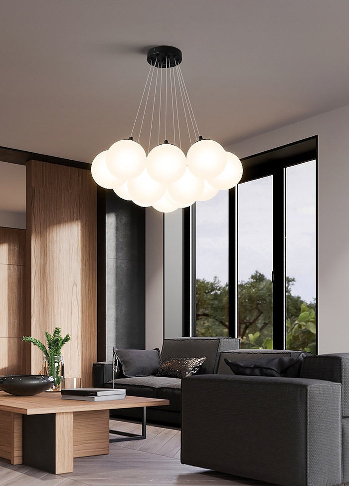 Norra taklampa med kulor i glasNorr är en vacker och modern taklampa med vackra kulor i matt glas. Lampan ger ett snyggt, elegant och lätt uttryck i inredningen och passar in i de flesta rum – allt ifrån köket till hallen eller vardagsrummet.Finns i storlekarna:Liten (diameter: 50 cm) - medföljer 12 kulor med en diameter på 12 cmMedium (diameter: 60cm) - medföljer 12 kulor med en diameter på 15 cmStor (diameter: 80 cm) - medföljer 12 kulor med en diameter på 20 cm